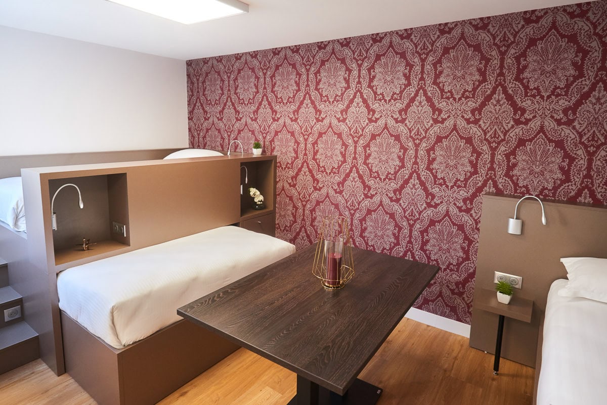 Studio familial composé de 2 lits de 140 cm + 1 lit de 80 cm.